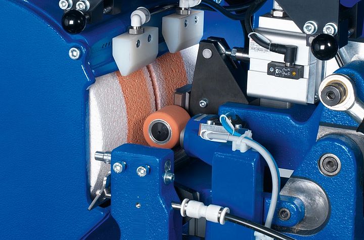 Securely fitting the aluminum covers on the top roller is a key requirement to ensure high yarn quality. Bräcker offers pneumatic and electrohydraulic presses which comply with CE standard regulations and ensure faultless and efficient operation.
